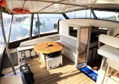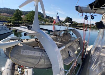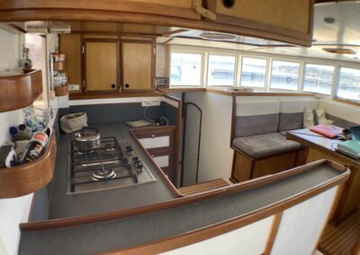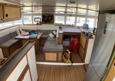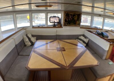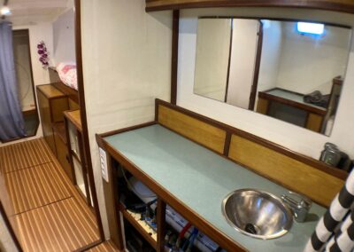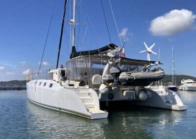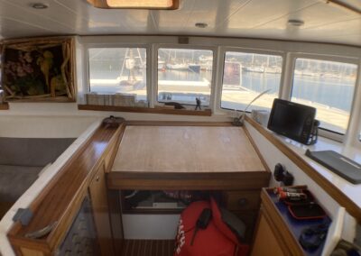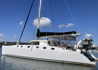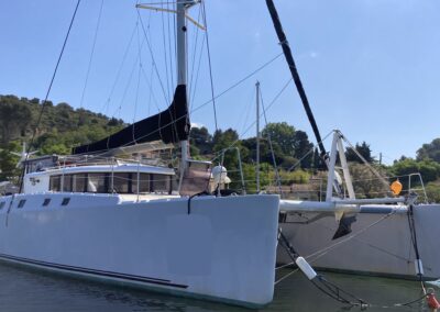 Très belle unité de 4 cabines ayant bénéficié d’un refit total depuis 5 ans. Une construction monobloc en sandwich airex-epoxy , un volume de cockpit, carré et cabines très bien pensé, digne d’un plus grand. Du circuit électrique, à la cuisine en passant par les bossoirs (sandwich carbone) ; tout est neuf ou très récent . A voir très vite pour partir en confiance en grande croisière !