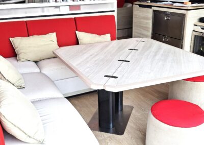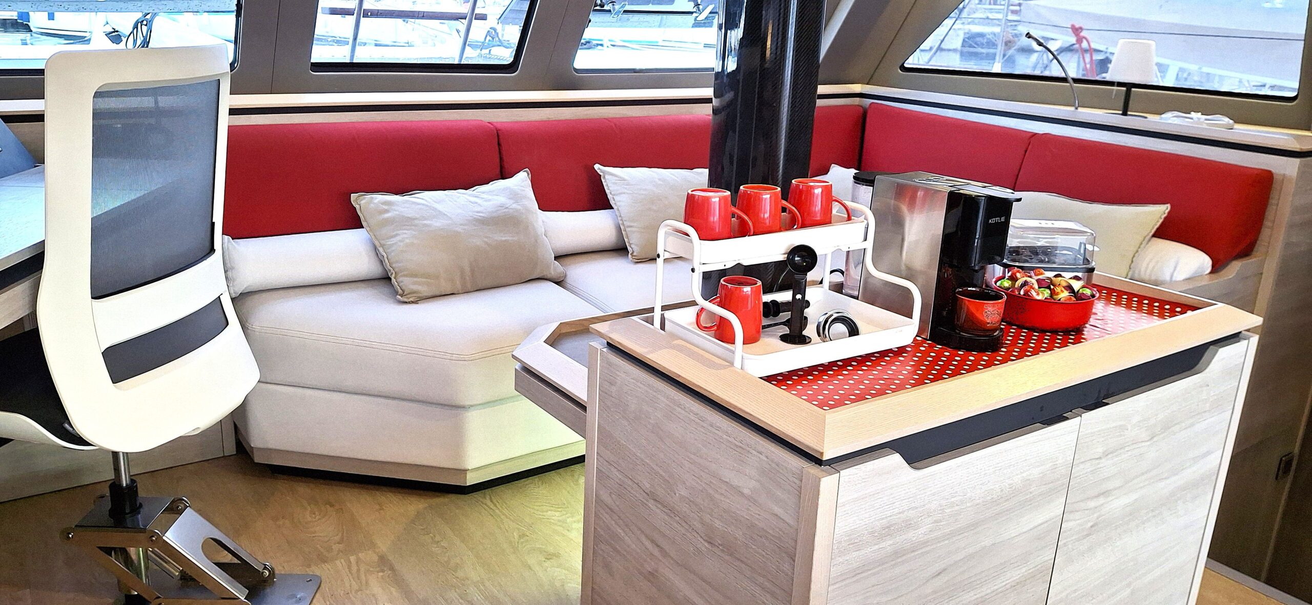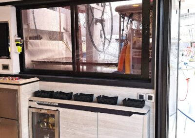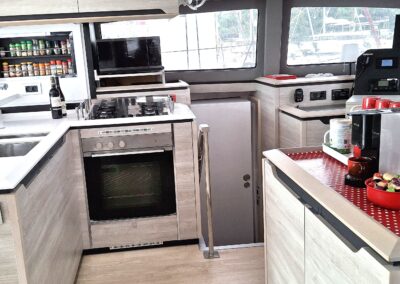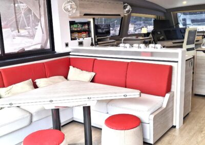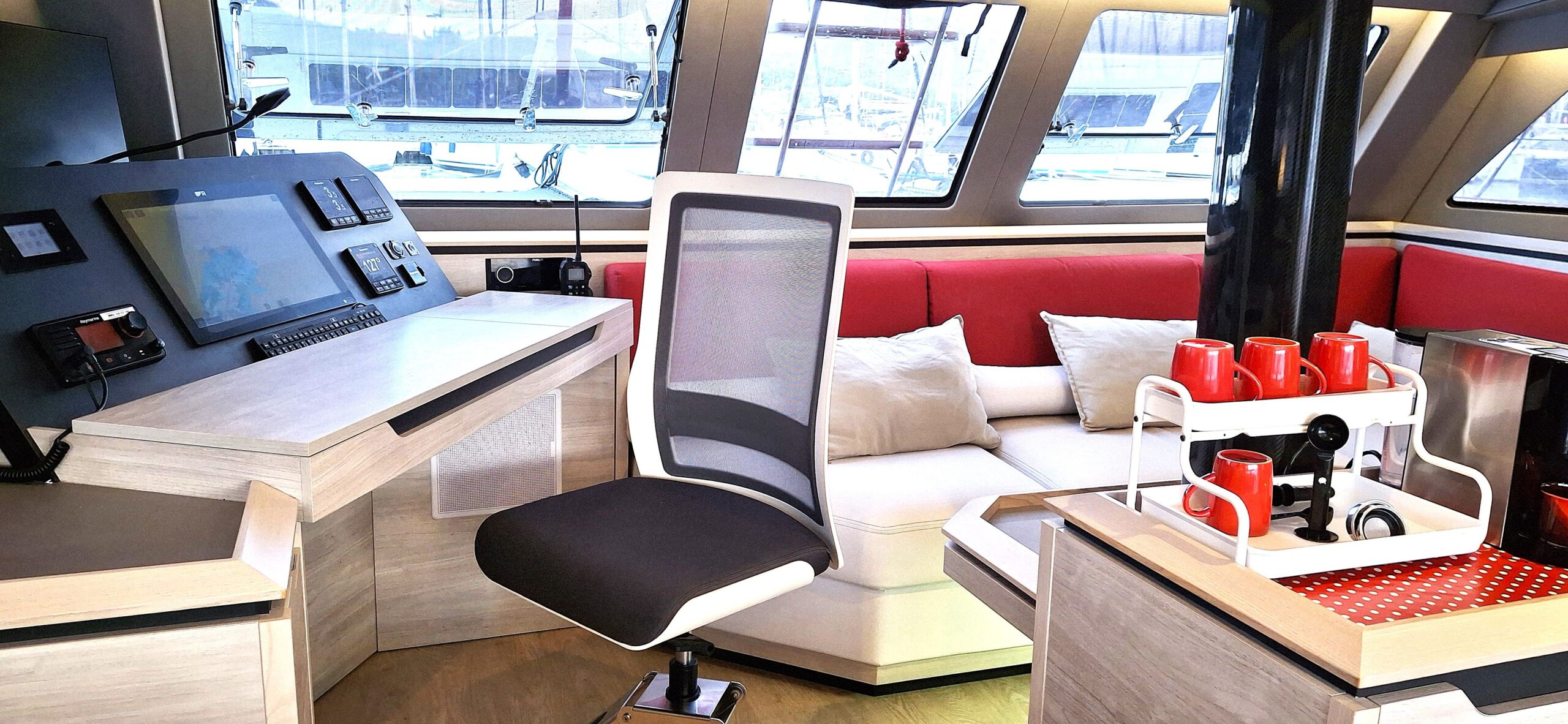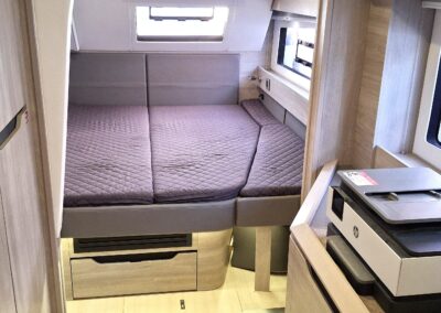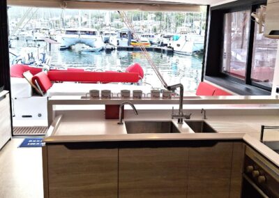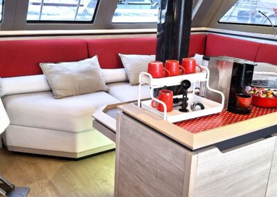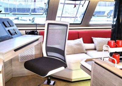 Fort de son expérience sur multicoques, le propriétaire, en collaboration étroite avec le chantier, a conçu ce navire pour une réelle praticité et autonomie, avec des choix techniques cohérents pour garder l’esprit Catana   : de belles moyennes dans le confort  !
