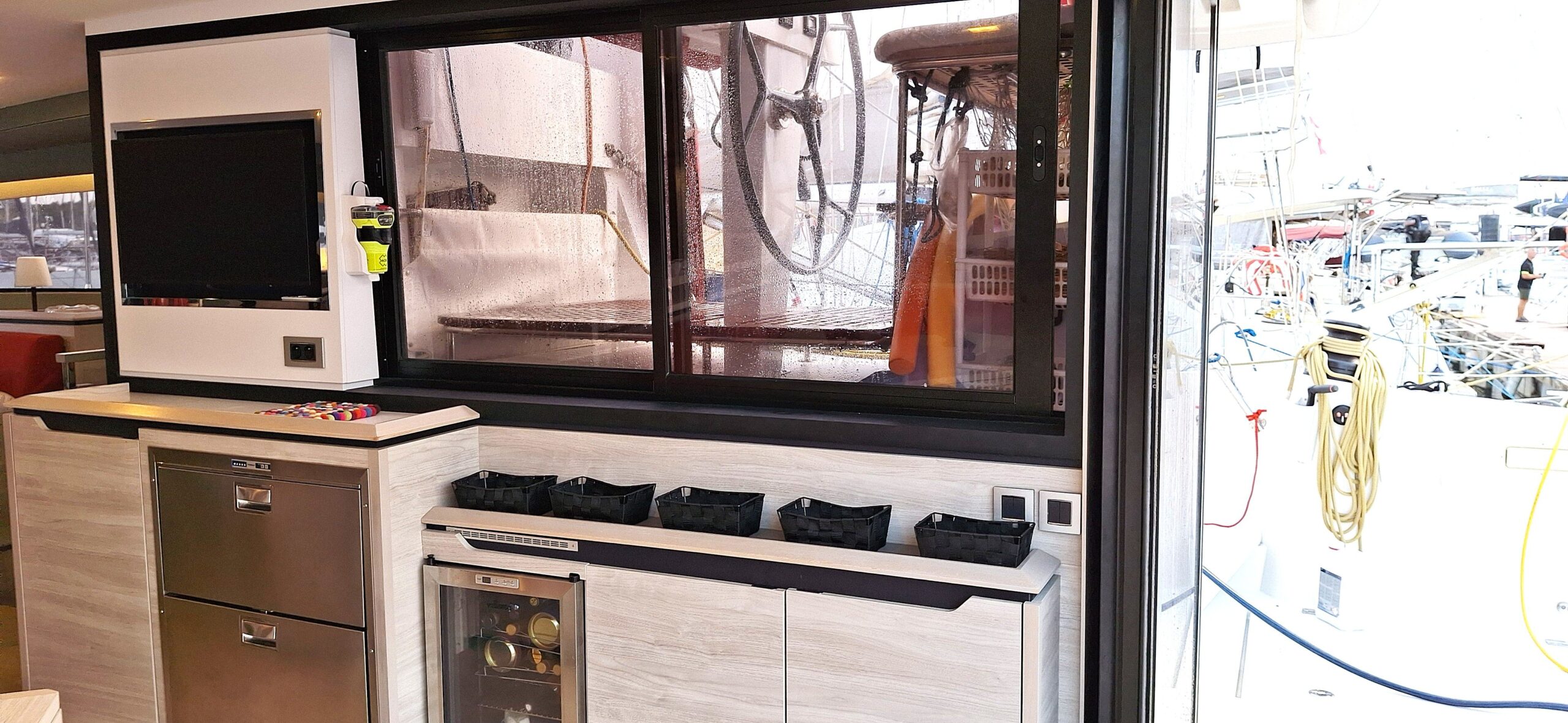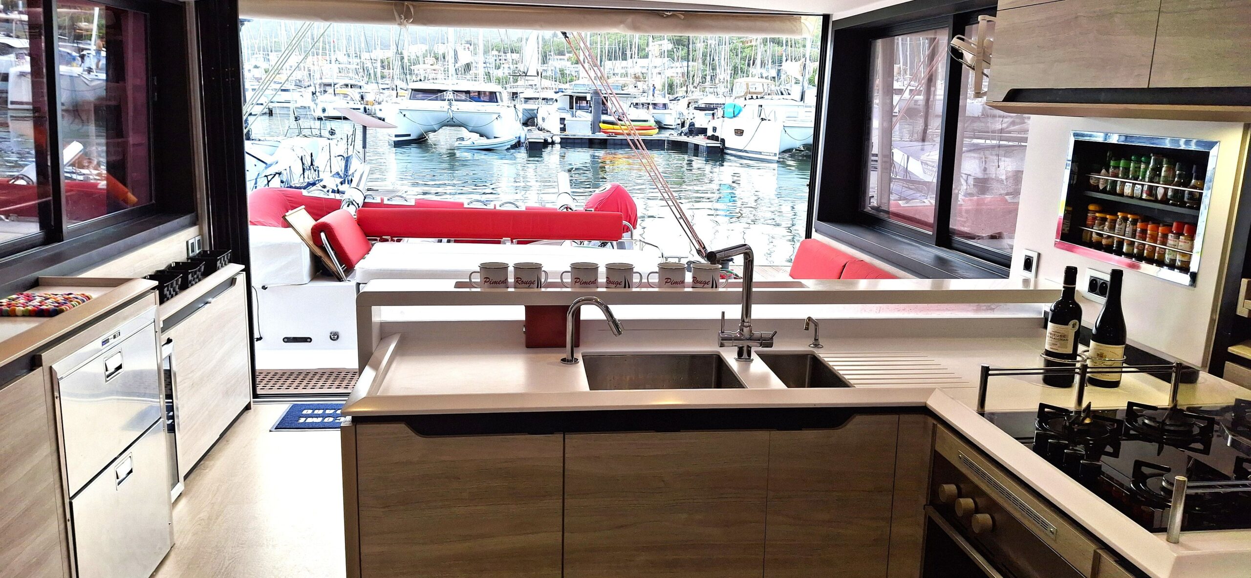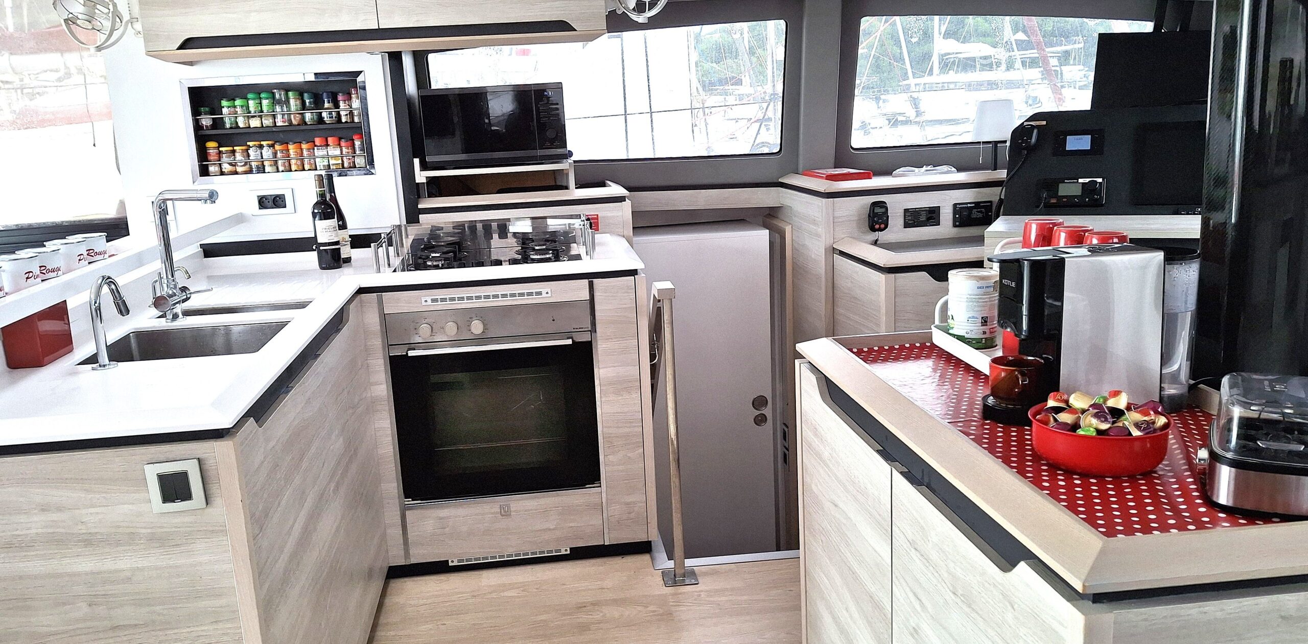 Fort de son expérience sur multicoques, le propriétaire, en collaboration étroite avec le chantier, a conçu ce navire pour une réelle praticité et autonomie, avec des choix techniques cohérents pour garder l’esprit Catana   : de belles moyennes dans le confort  !