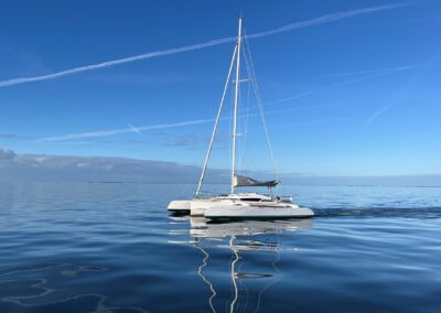 Moteur hors-bord Honda 15 CV, 1 cabine double à l’avant, 1 cabine d’appoint à l’arrière, 1 toilette séparée, Mât carbone de 13.60m, Jeu de voile complet Elvström EPEX GV 43m², Génois sur enrouleur 21.5m², Code 0 sur emmagasineur bartel 45m², Spi Asymétrique 83m². Panneaux solaires (1x50W + 2x38W), Antifouling Coppercoat, Bateau hiverné au sec tous les ans.