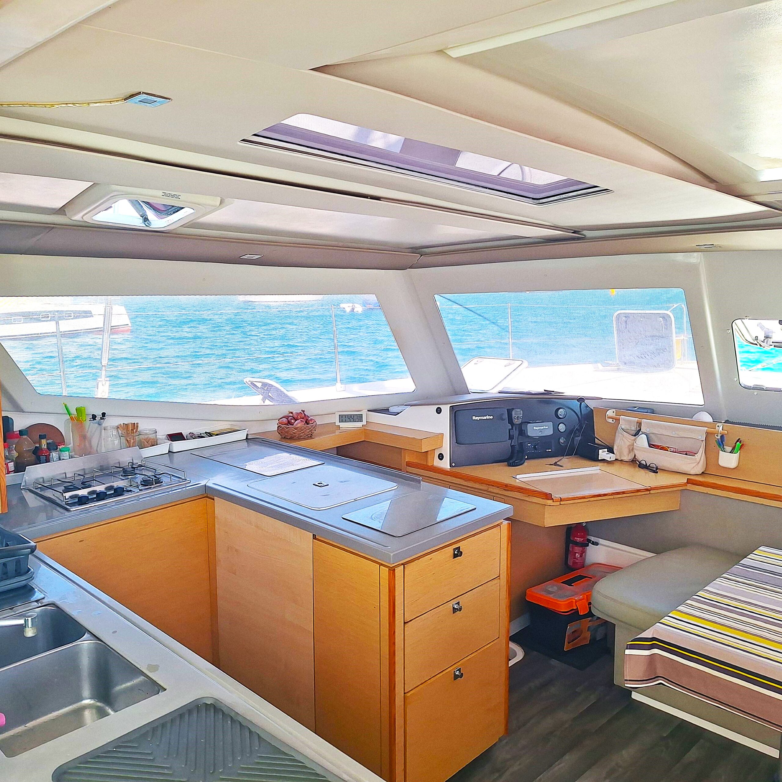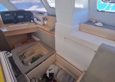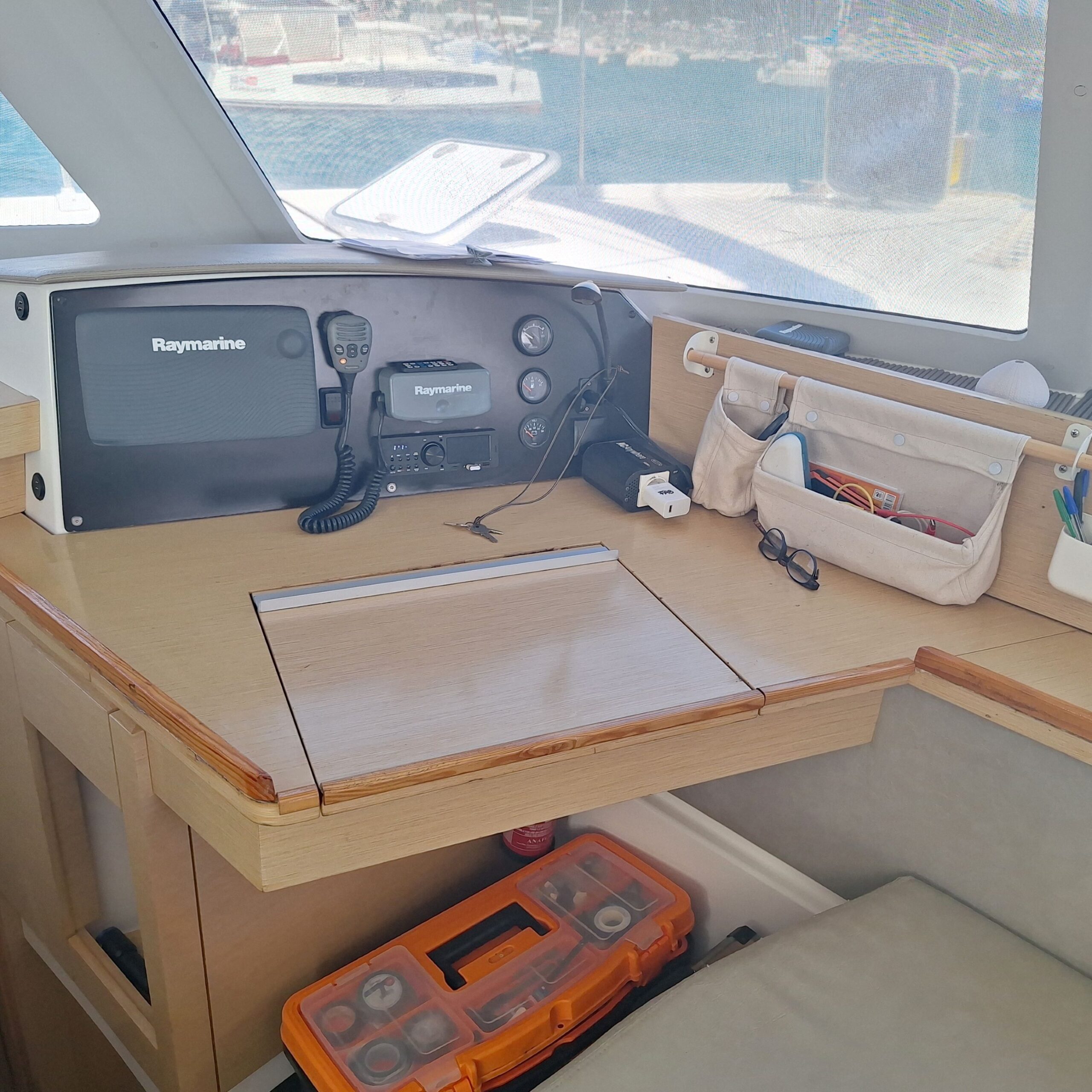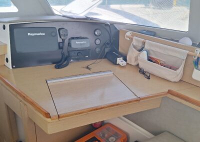 Électronique Raymarine avec traceur au poste de barre ainsi qu’à la table à carte, sondeur, Speedo, girouette, pilote automatique ; AIS .