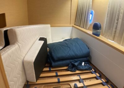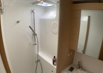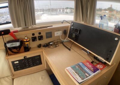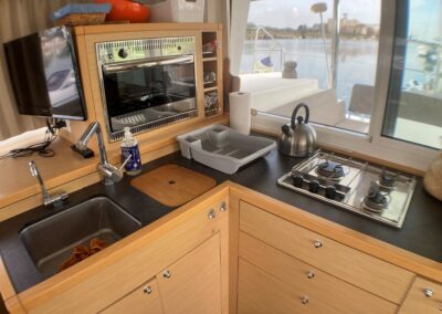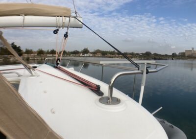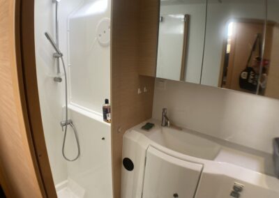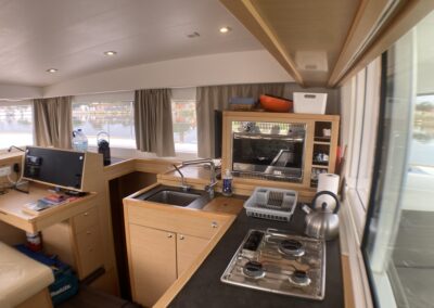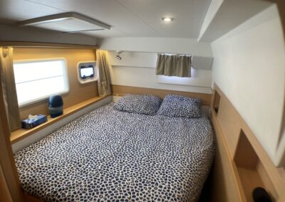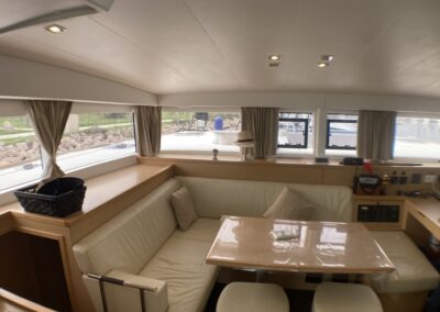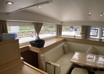 Le Lagoon 400 S2 réussit à concilier confort, performances et sécurité. Avec son haut franc-bord, un mat au gréement surdimensionné, le grand large ne lui fait pas peur. A l’intérieur, un grand carré lumineux, 4 cabines et dans cette version, deux salle de bain avec douche séparée. Ce modèle s² a vu son carré modifié pour plus de confort et rangements.
